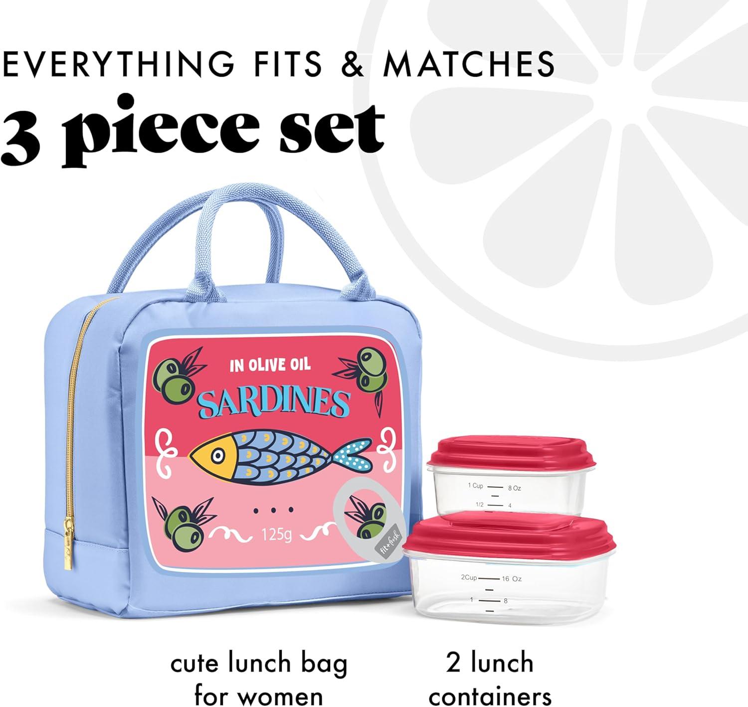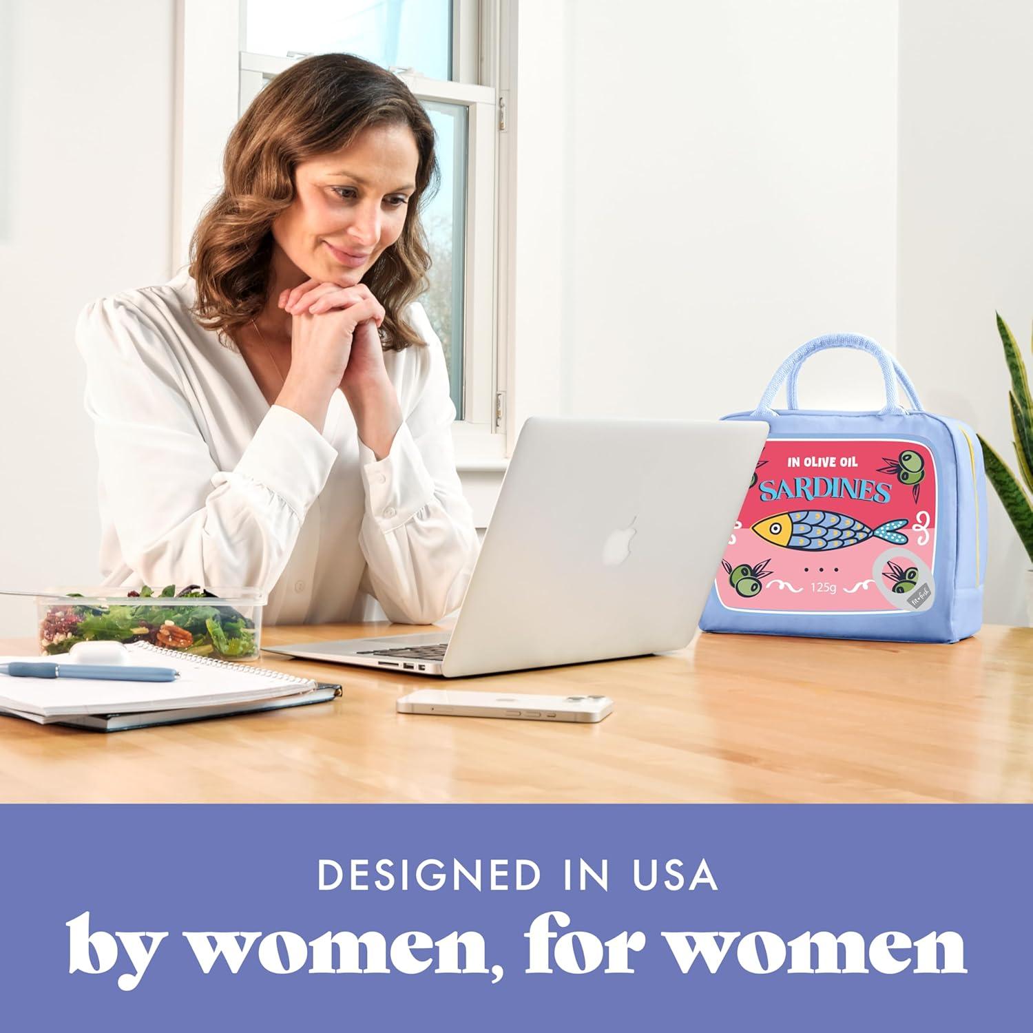 imageFit ampamp Fresh Bloomington Lunch Bag for Women  Insulated Large Lunch Box for Work with Containers LeakResistant StainResistant Zipper Closure All Smiles Bubble GumRose Sardine Can