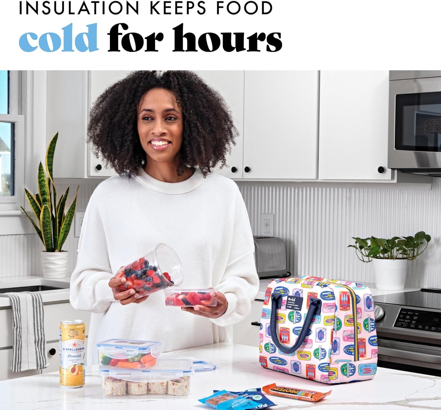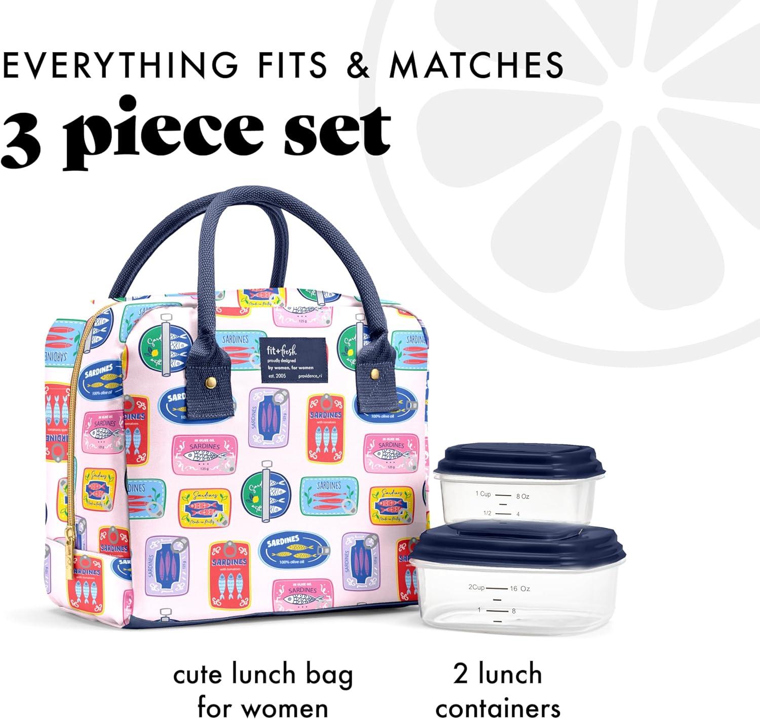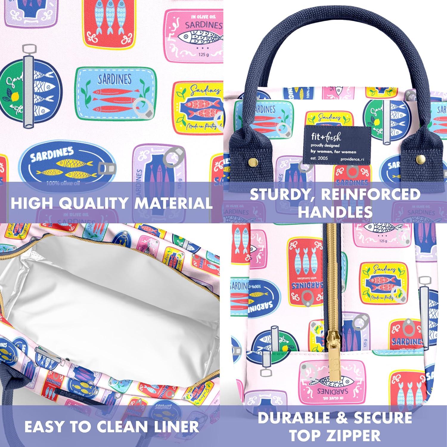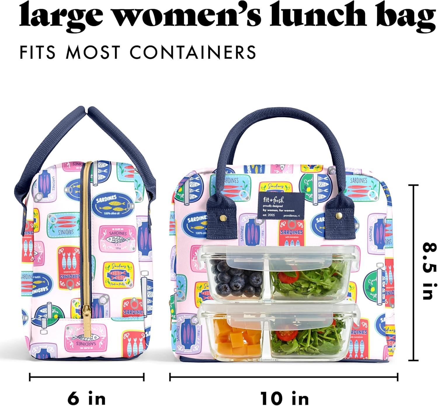 imageFit ampamp Fresh Bloomington Lunch Bag for Women  Insulated Large Lunch Box for Work with Containers LeakResistant StainResistant Zipper Closure Fruit PrintAssorted Sardines