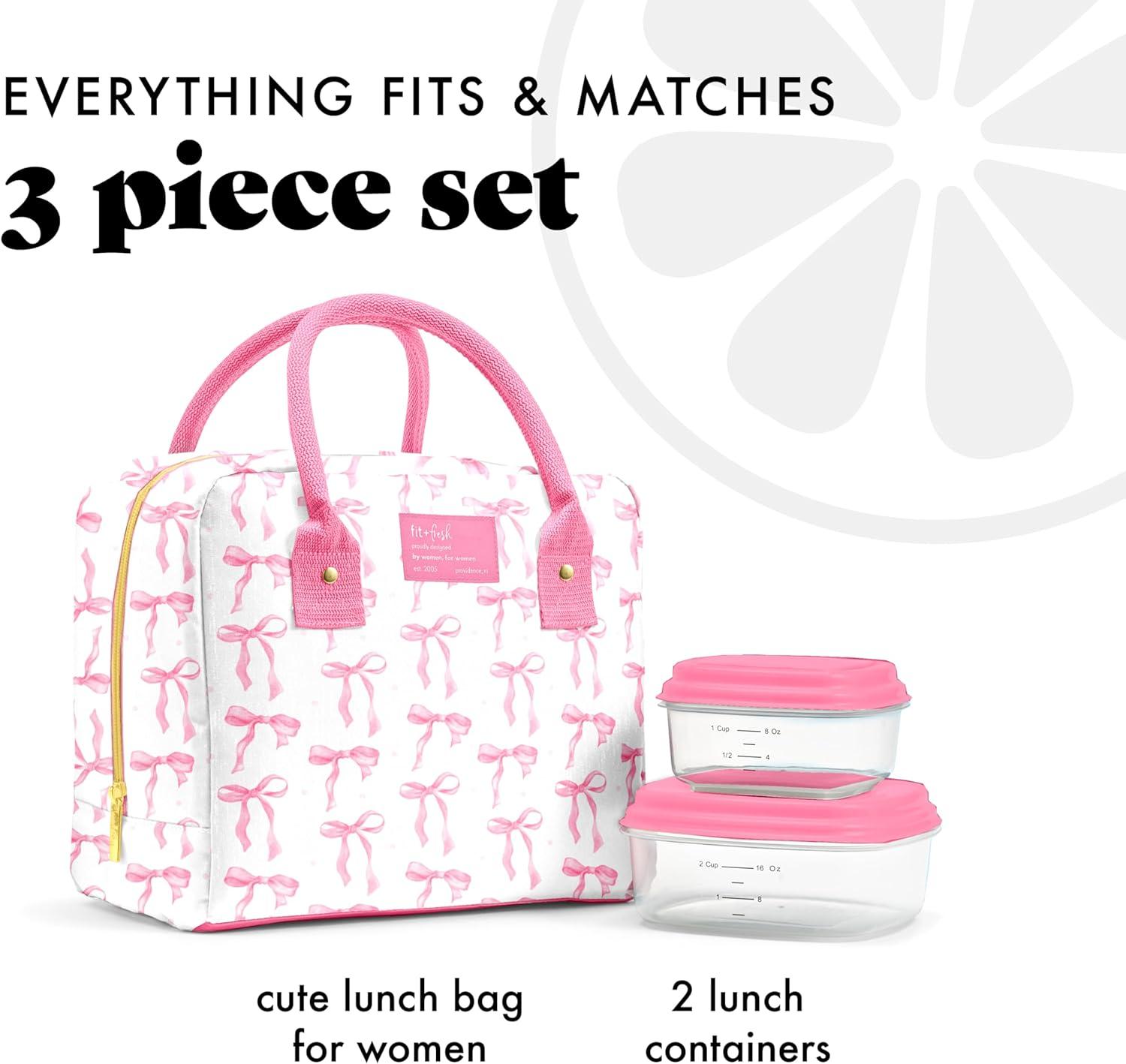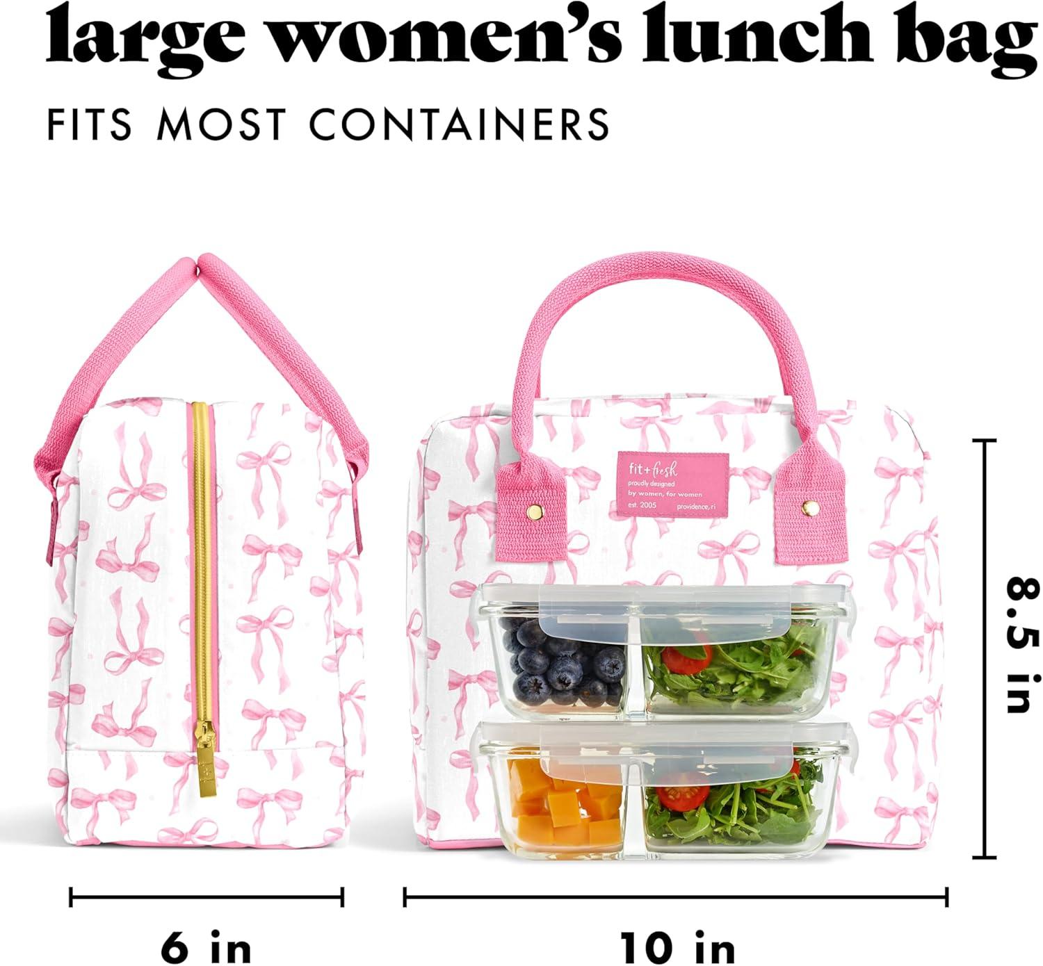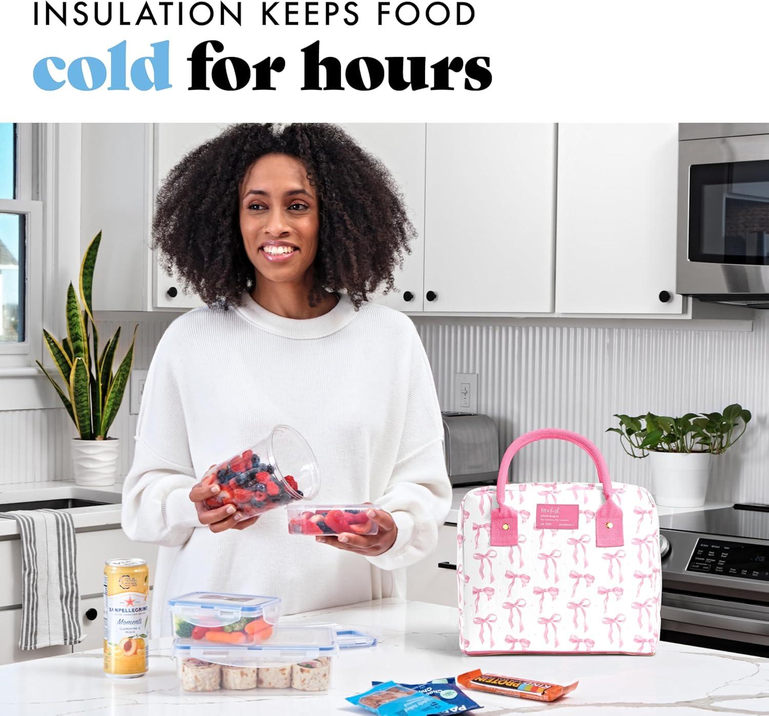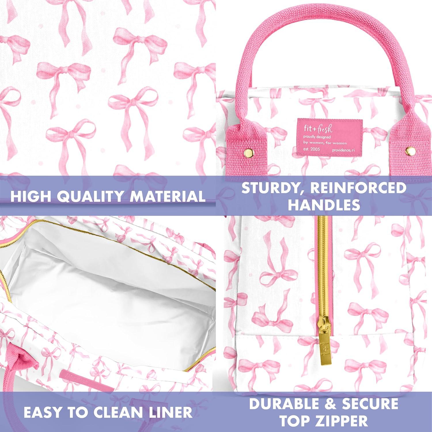 imageFit ampamp Fresh Bloomington Lunch Bag for Women  Insulated Large Lunch Box for Work with Containers LeakResistant StainResistant Zipper Closure Fruit PrintPink Bows