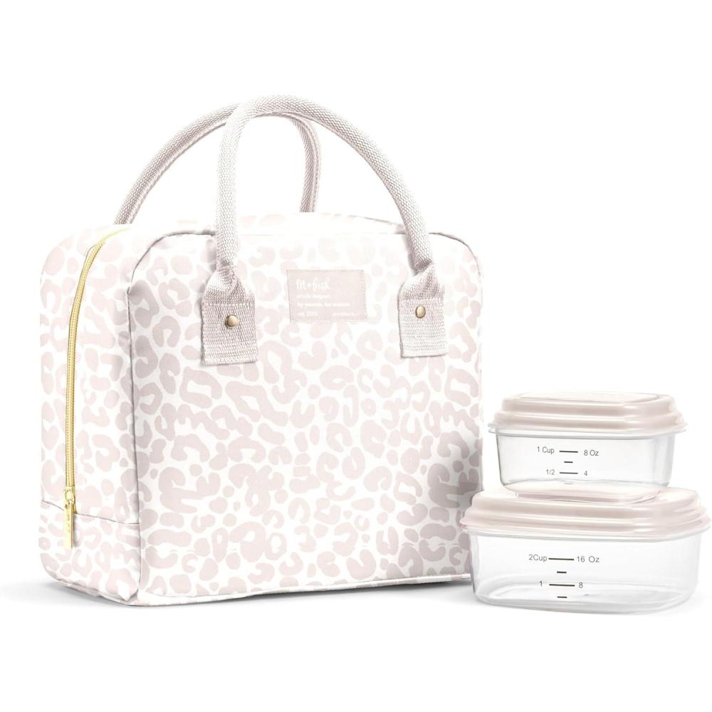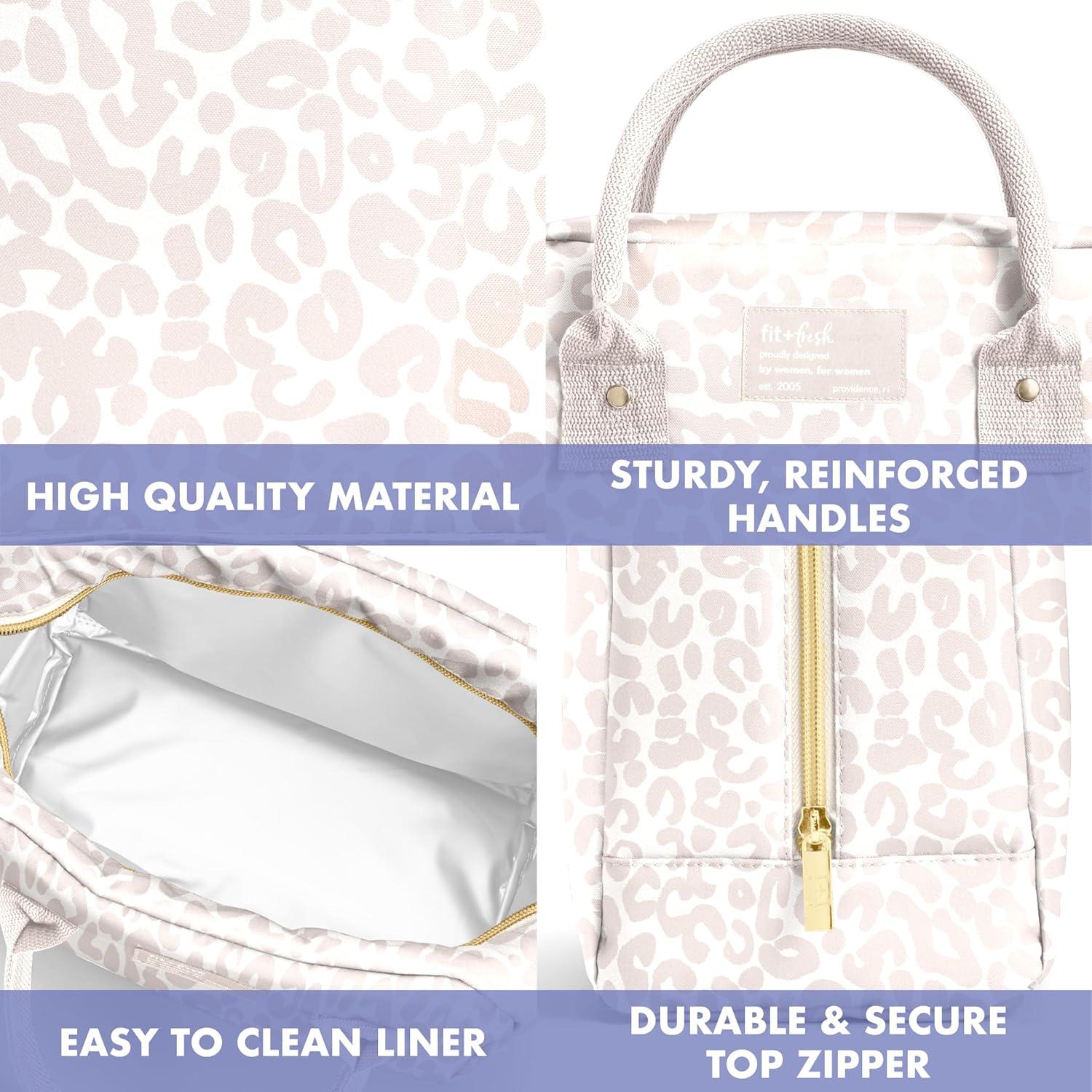 Fit & Fresh Bloomington Lunch Bag for Women - Insulated Large Lunch Box for Work with Containers, Leak-Resistant, Stain-Resistant, Zipper Closure, Mauve(Feline Fine Ivory)