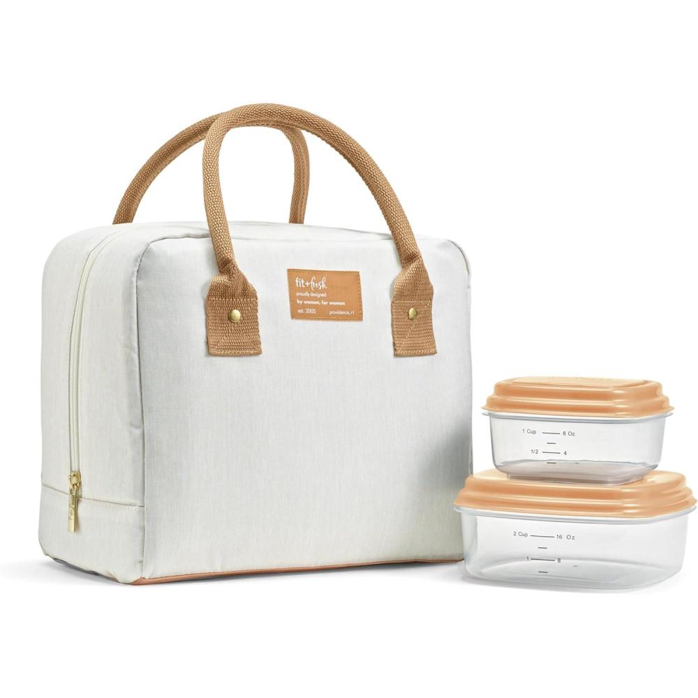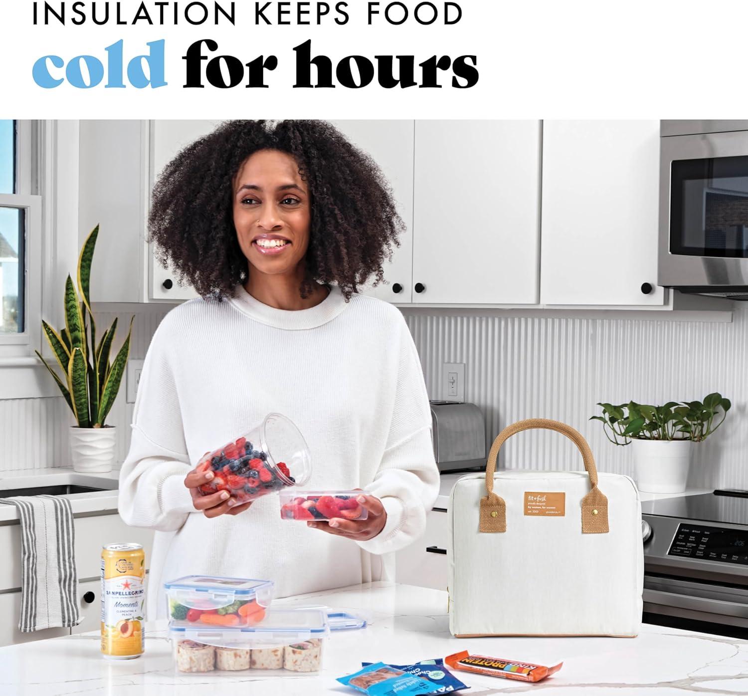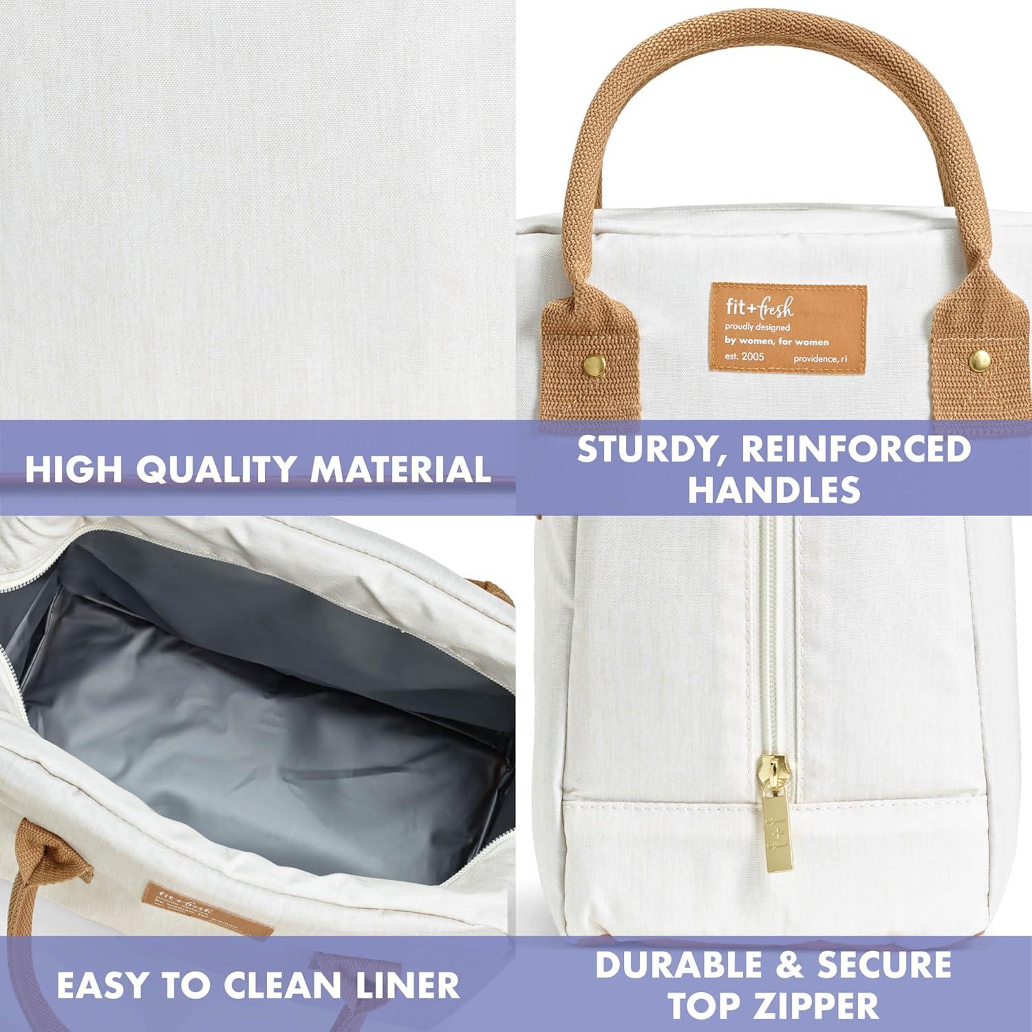 imageFit ampamp Fresh Bloomington Lunch Bag for Women  Insulated Large Lunch Box for Work with Containers LeakResistant StainResistant Zipper Closure MauveIvory