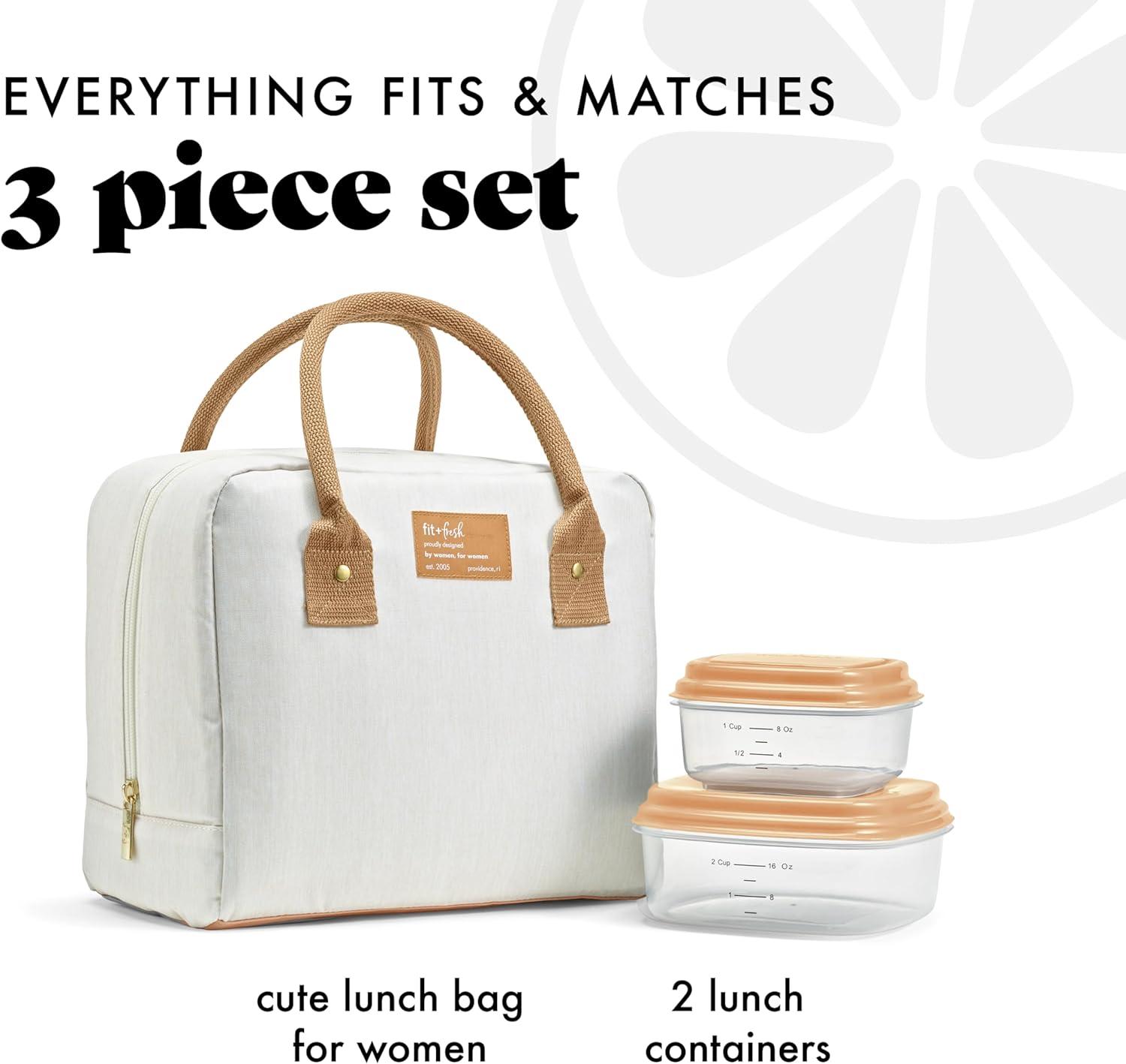 The Bloomington, effortlessly chic, it includes an XL ice pack and two matching containers – one 1 cup and one 2 cup – ensuring your meals stay fresh and organized. Designed for both convenience and style, this spacious bag features two straps, easy to clean liner, and a durable zipper for easy access on the move. Measuring 10″L x 8.5″H x 6″W, its durable, stain-resistant exterior houses a roomy interior, complete with a wide top opening for seamless meal retrieval. Whether you're seeking an insulated lunch bag, a spacious lunch box, or a cute tote for work, we have you covered. Our range includes adult lunch boxes with matching containers, large lunch tote bags, and more. Crafted with convenience and style in mind, our products feature super foam thermal insulation to keep your meals hot or cold on the go. Elevate your lunch game with our chic designs, perfect for office lunches or outings. Shop Fit & Fresh and experience the perfect blend of fashion and functionality with our women's lunch bags and boxes.