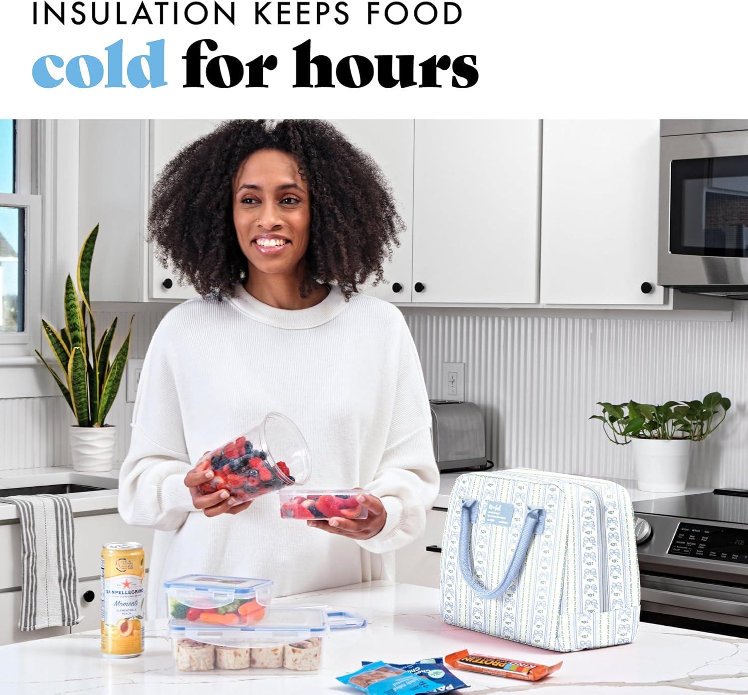 imageFit amp Fresh Bloomington Lunch Bag for Women  Insulated Large Lunch Box for Work with Containers LeakResistant StainResistant Zipper Closure Pink Dainty BowsLight Blue Wallpaper Bows