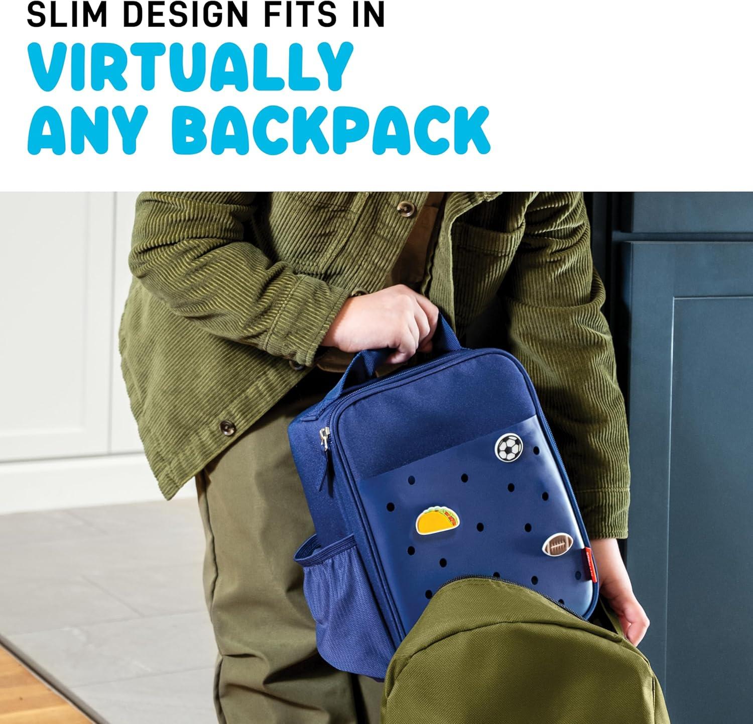 FUN FOR KIDS: This thermal lunch box for kids features 22 shoe charm slots so kids can decorate their own lunch box. The front charm pocket works great for snacks and notes, and fits any charms.