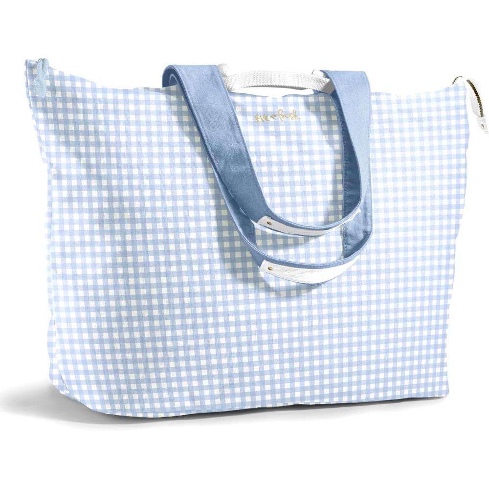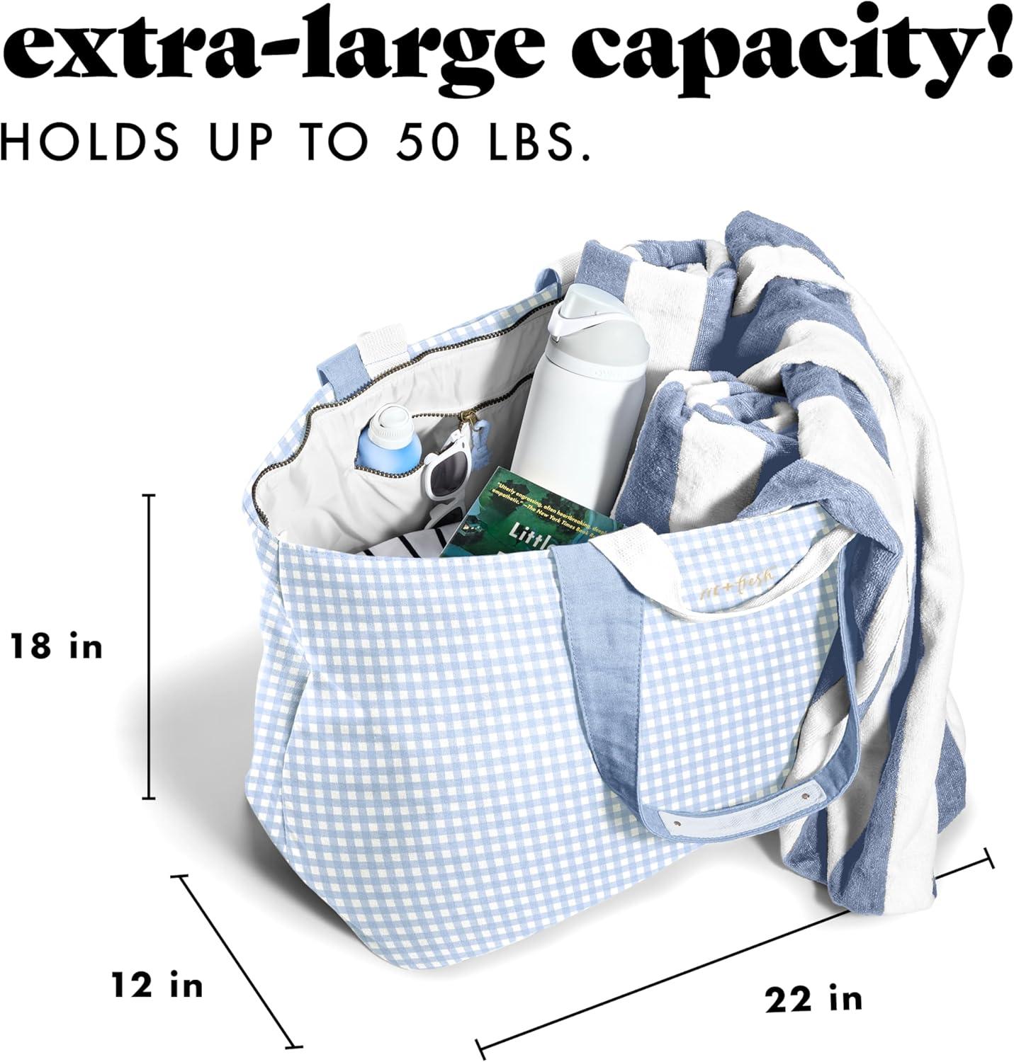 Fit & Fresh Large Beach Bag for Women – Extra Large Travel Tote With Pockets(Blue Gingham)
