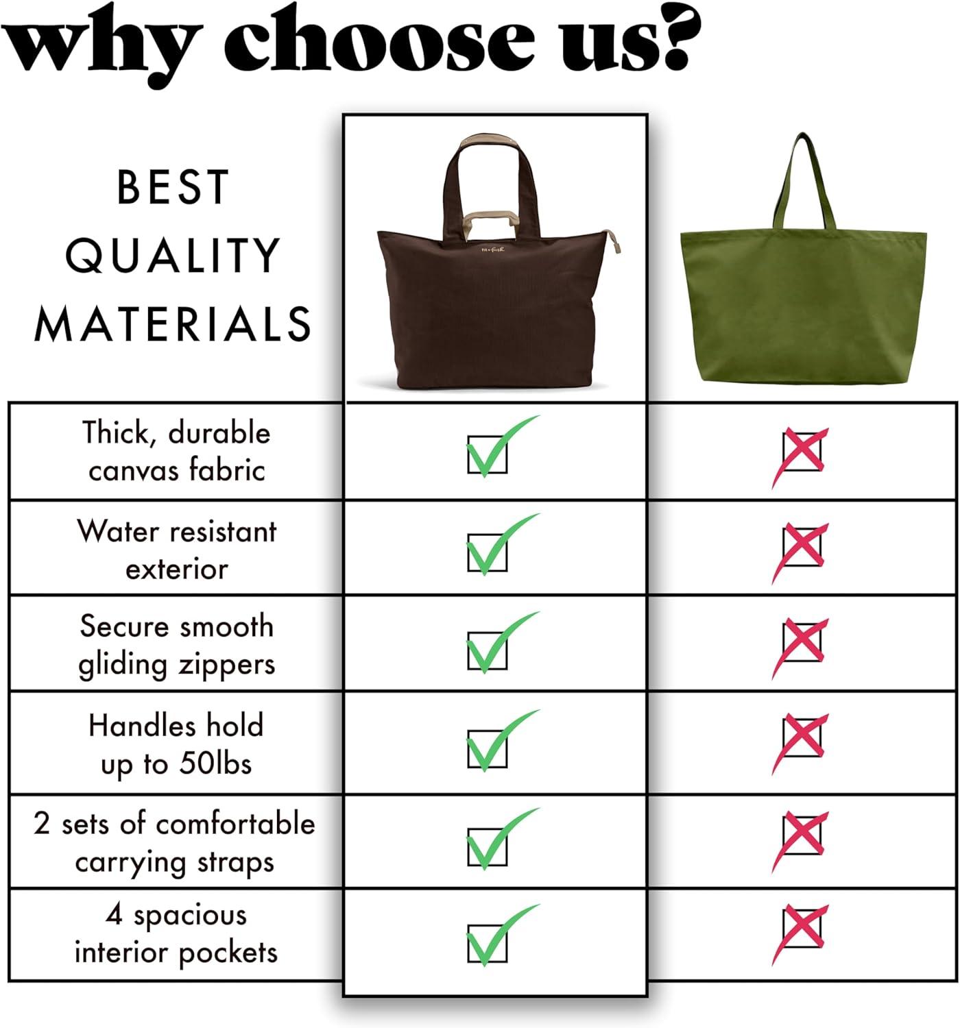Fit & Fresh Large Beach Bag for Women – Extra Large Travel Tote With Pockets(Chocolate)