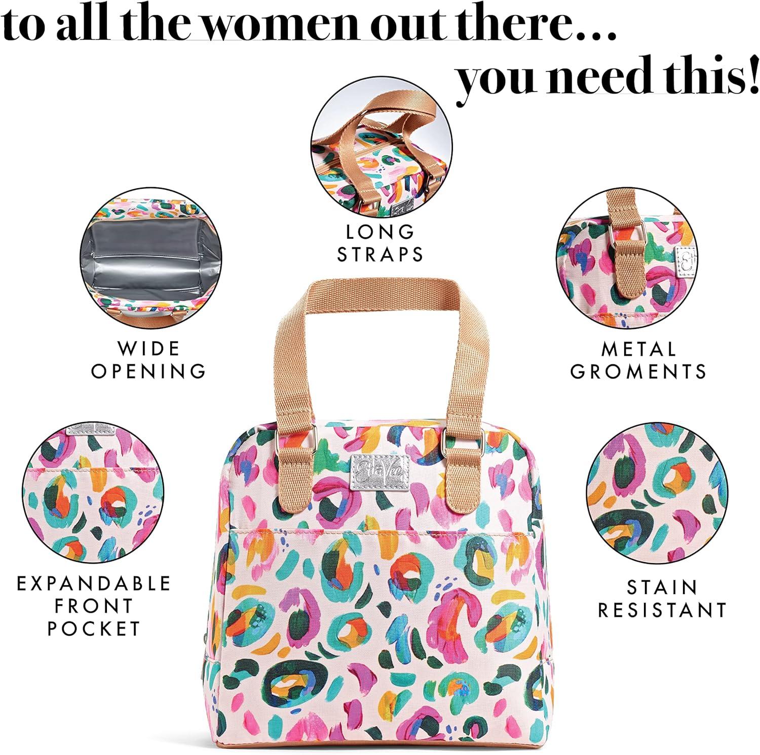 SPACIOUS WOMENS LUNCH BOX – Measures 10″L x 9.5″H x 6″W, our durable stain resistant large lunch bag offers a roomy interior for multiple containers. Easy to clean, it features a wide top opening for effortless access to your meals and snacks.
