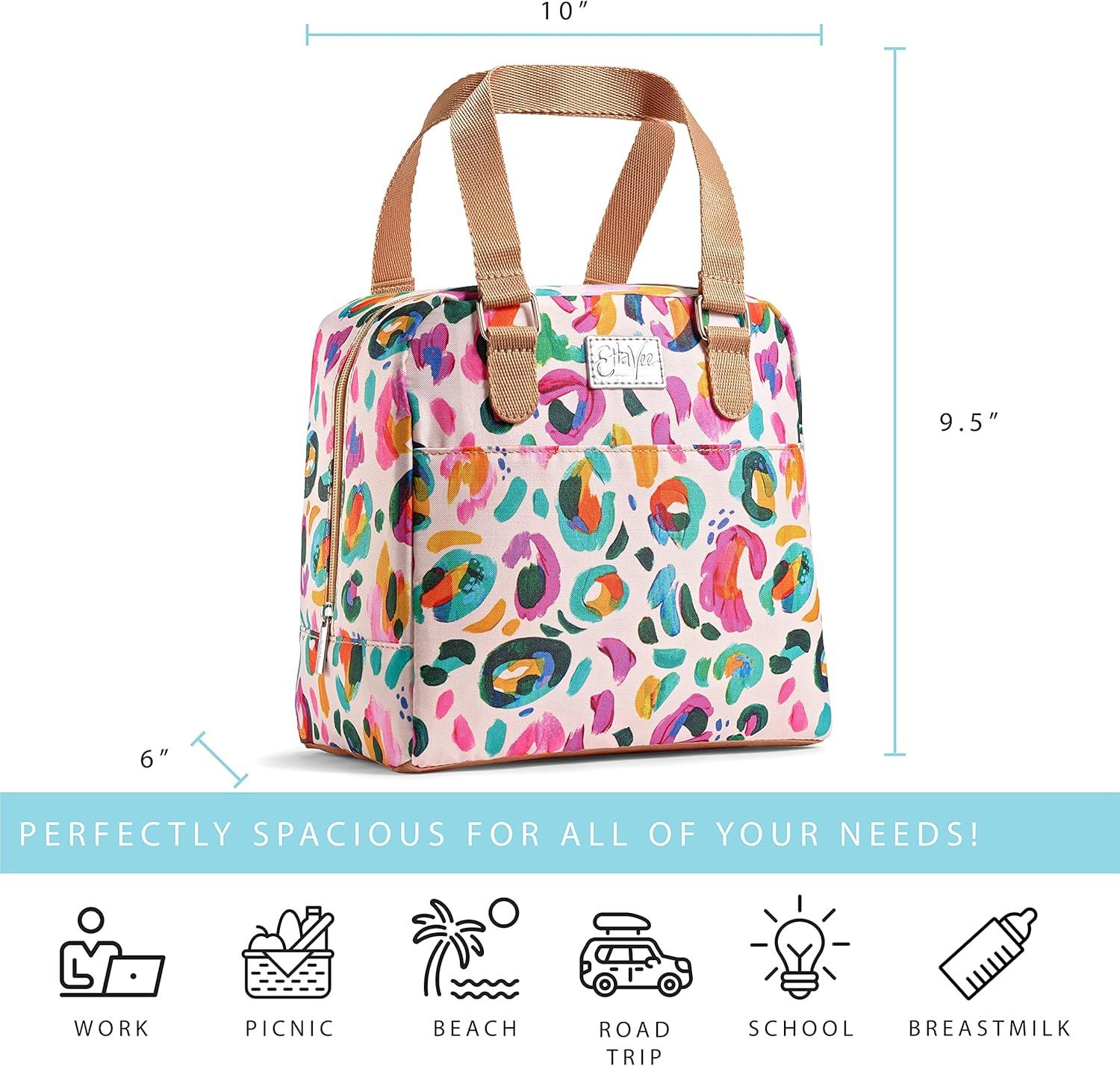 Fit & Fresh Lunch Bag For Women, Insulated Womens Lunch Bag For Work, Leakproof & Stain-Resistant Large Lunch Box For Women With Containers, Zipper Closure Minneola Bag Blue Tie Dye(Blush Leopard)