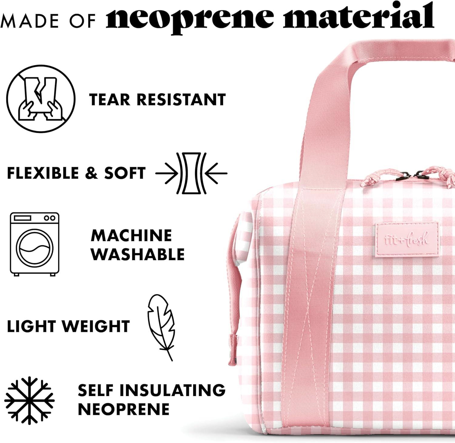 imageFit ampamp Fresh Neoprene Lunch Bag For Women Insulated Womens Lunch Bag For Work Tear ampamp Stain Resistant Large Lunch Box For Women With Containers and Ice Machine Washable Remi Bag Dark ChocolatePink Gingham