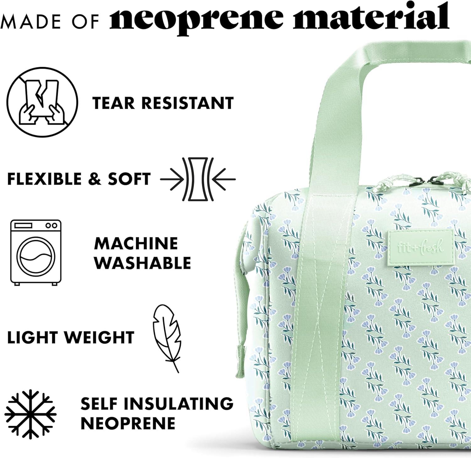 Fit & Fresh Neoprene Lunch Bag For Women, Insulated Womens Lunch Bag For Work, Tear & Stain Resistant Large Lunch Box For Women With Containers and Ice, Machine Washable Remi Bag, Ivory Stripe(Sage Flower Block)