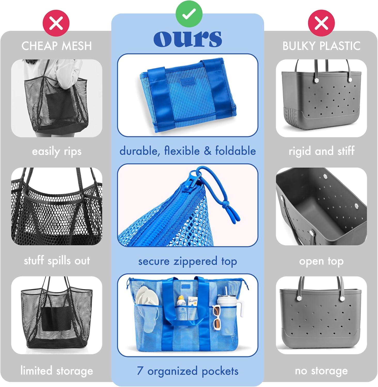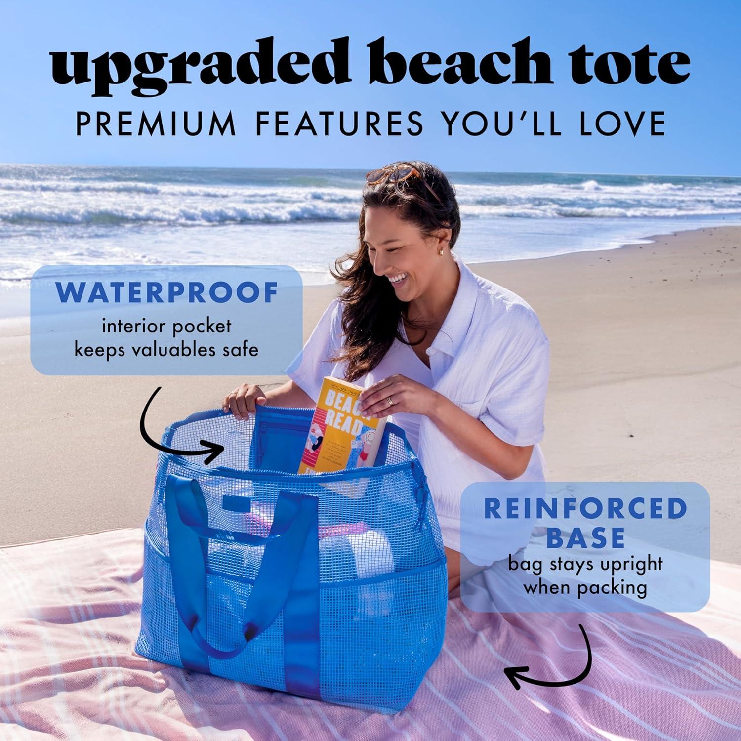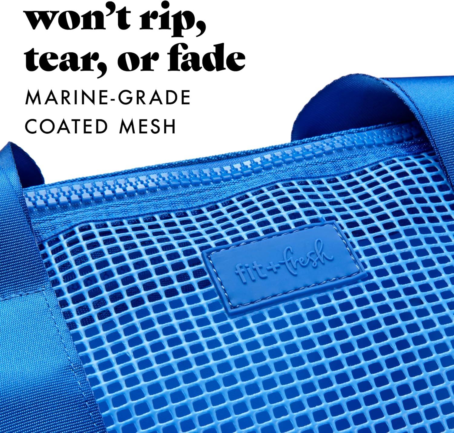 Fit & Fresh The Shore Thing™ XL Marine Grade Mesh Beach Bag, Extra Large Beach Tote, Durable, Sandproof Oversized Pool Bag(Marina Blue)