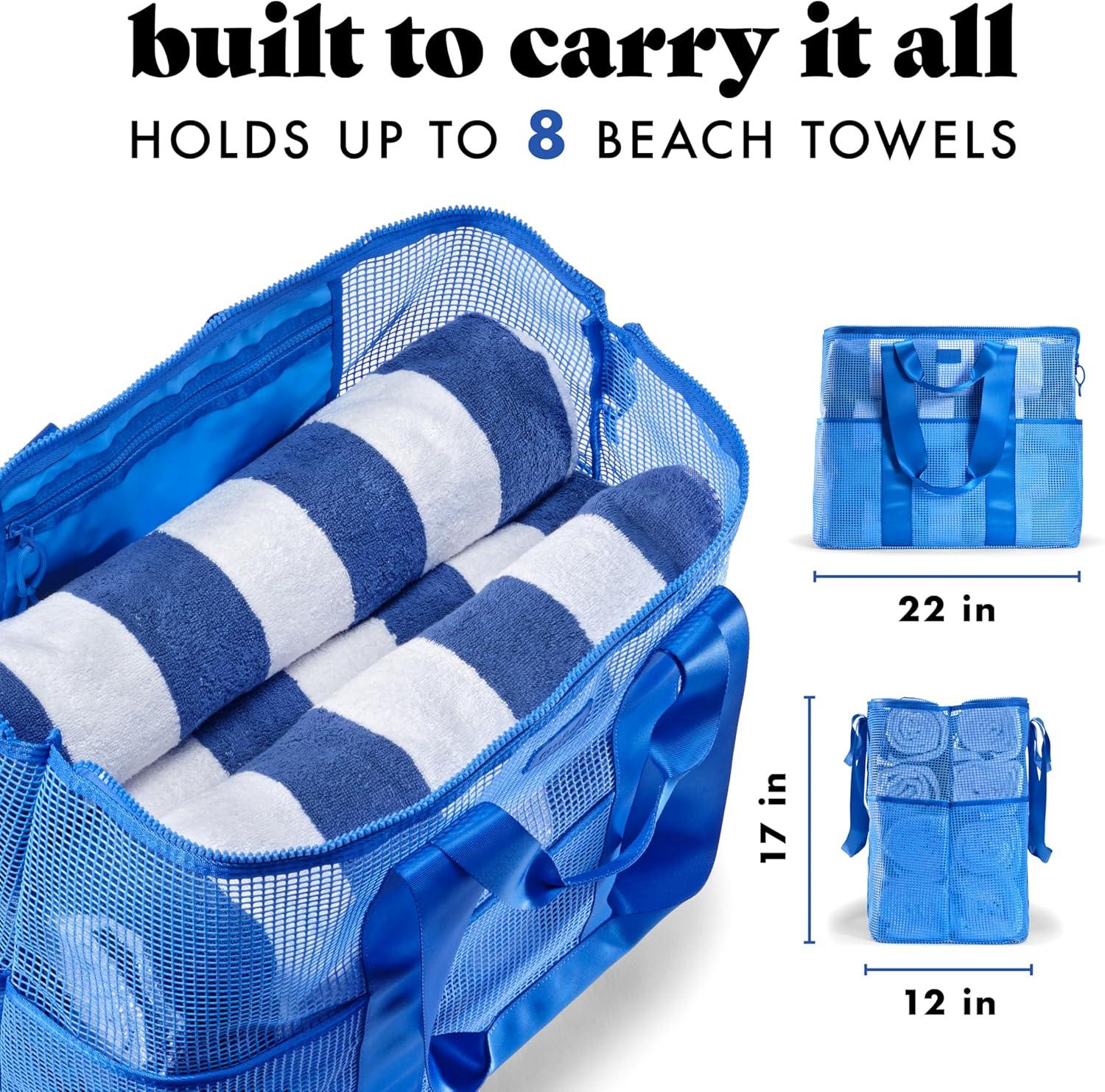 imageFit amp Fresh The Shore Thing XL Marine Grade Mesh Beach Bag Extra Large Beach Tote Durable Sandproof Oversized Pool BagMarina Blue