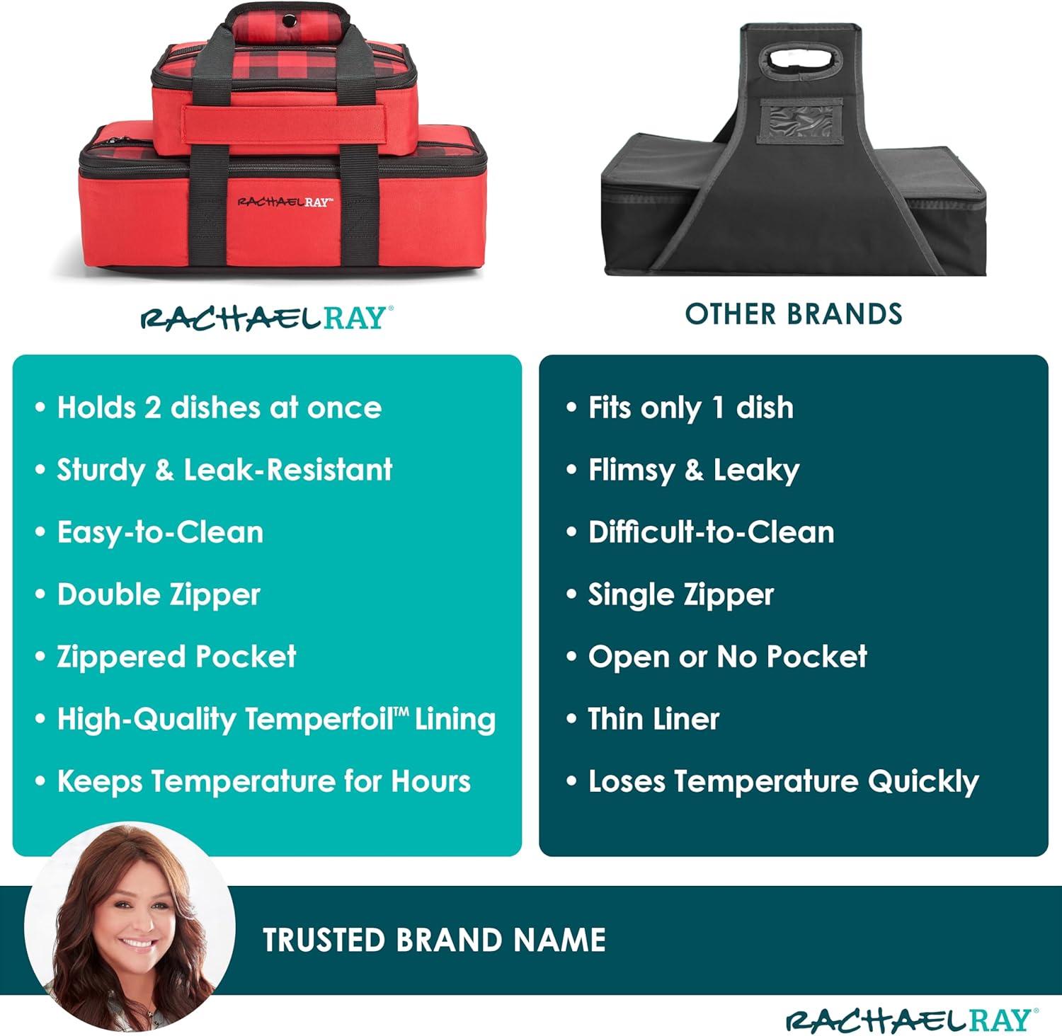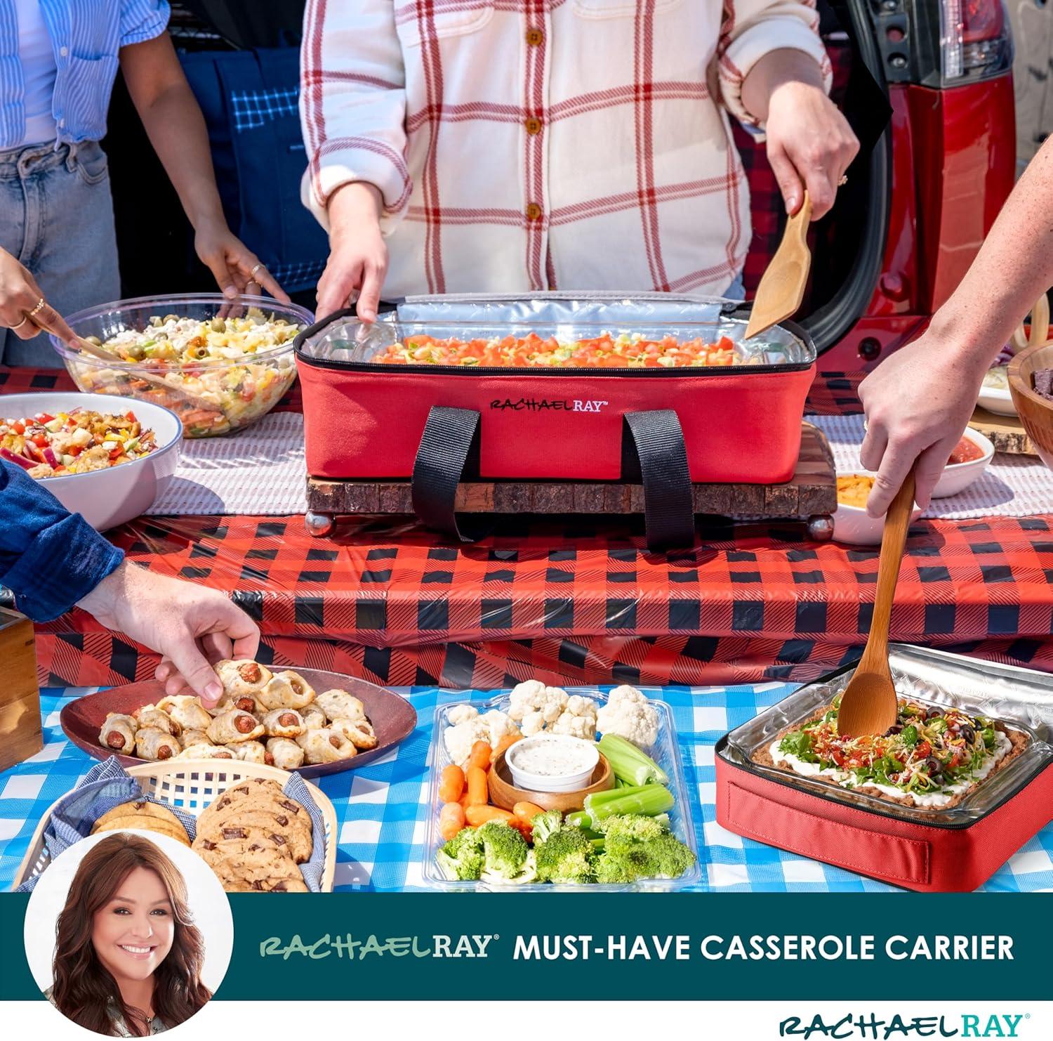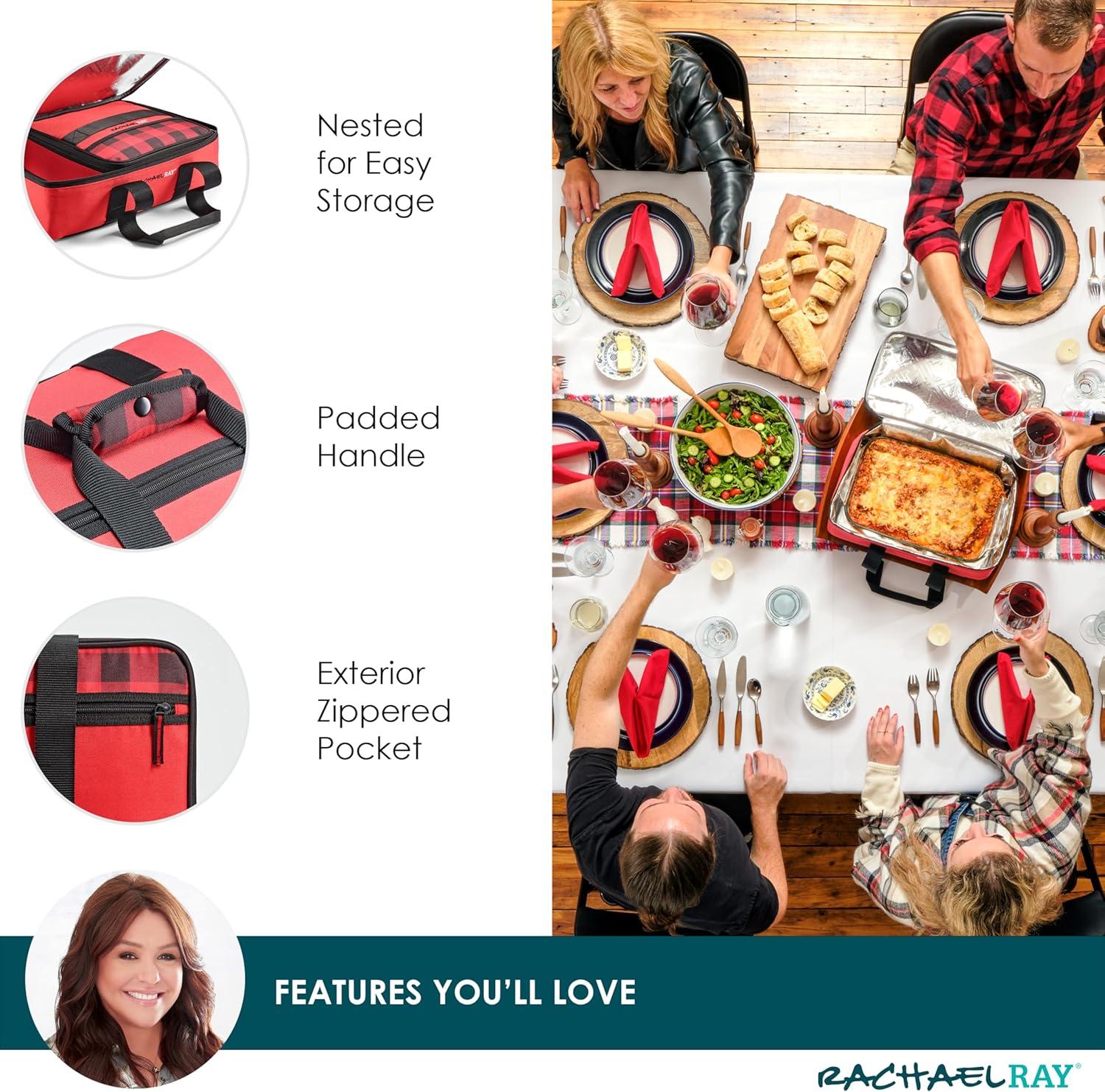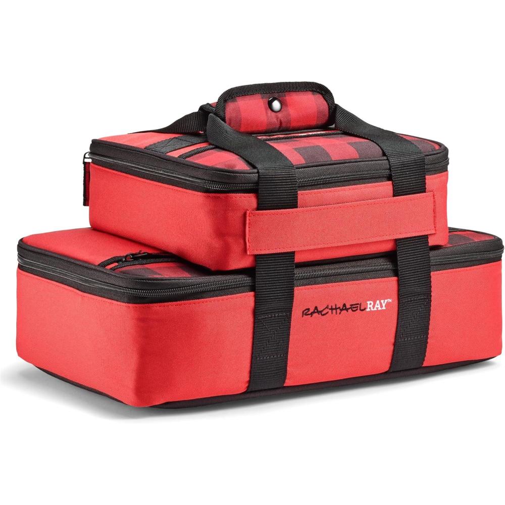 imageRachael Ray Lugger Duo Insulated Casserole Carrier for Hot or Cold Food Thermal Lasanga Lugger Tote for Potluck Parties Picnic and Cookouts Fits 9quot x 13quot Baking Dish Slate StripeRed Buffalo